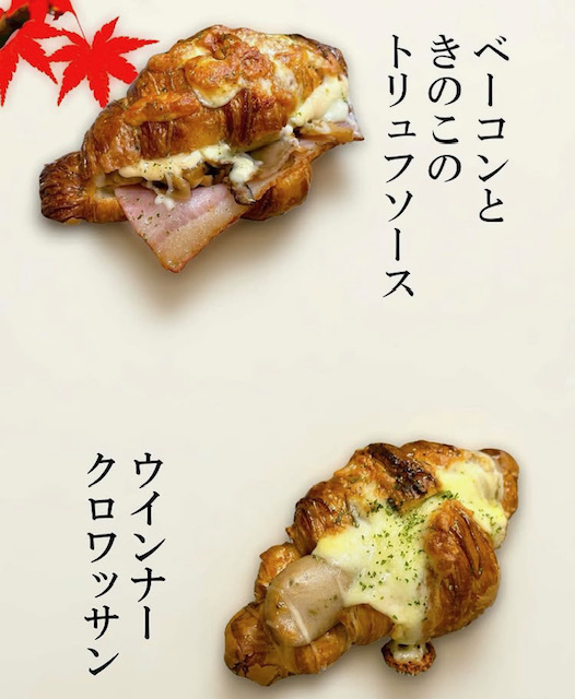 旨味溢れるベーコンと4種のきのこを挟んでトリュフソースで仕上げた薫り高い秋のクロワッサンです。