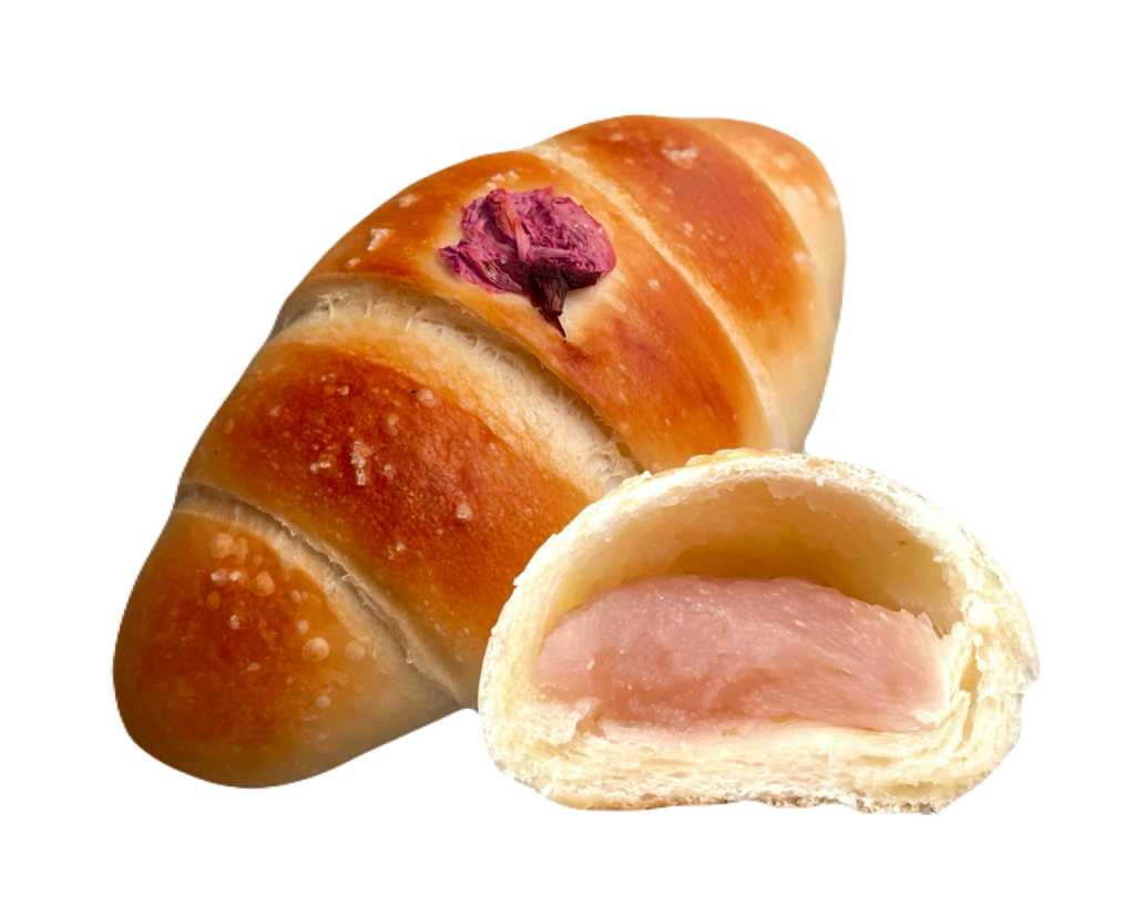 さくさくクロワッサンに春色さくらあんとホイップクリームをあわせた春限定の一品。